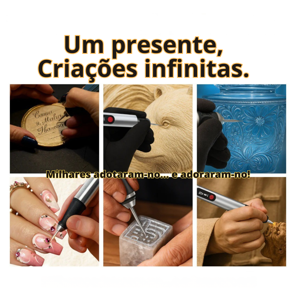 Esqueça os cabos, os limites e a frustração. A Caneta de Gravura oferece liberdade sem fios, carregamento rápido, mais pontas e um design leve e fácil para iniciantes que supera os gravadores tradicionais em todos os aspetos.